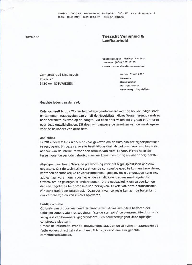 Opmerking over het bestuur en het beleid over het Nijpelsplantsoen project